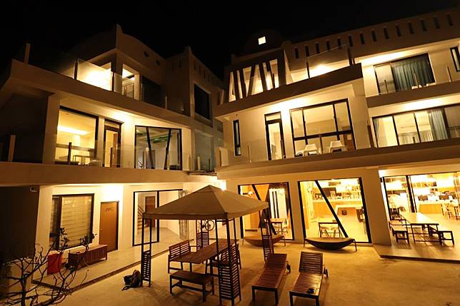 西衛民宿聚落中,這個外觀如同方塊狀層疊的白色建築,在藍天與綠草地的包圍之下,顯得明亮耀眼。簡約的室內設計,木質配色軟化了輕工業風帶來的些許生硬冷澀,構築出令人眼睛為之一亮的現代設計風情。