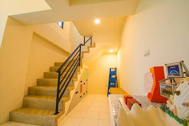 一樓大廳的開闊,適合親朋好友相聚歡笑,而不同房間以各色景照打造出的各異風格,令人充滿對於旅遊探訪的渴望。蔭廊下的小躺椅,讓人吹著海風,吹散所有煩心俗務。