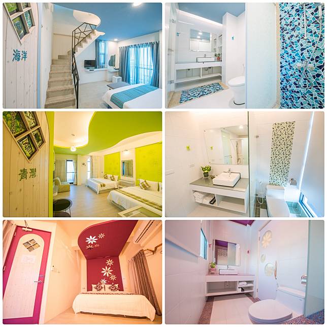 為了帶給旅客們最不受干擾的空間享受,民宿主人不惜減少房間數量,就是要讓大家住的輕鬆愉快。僅僅三間客房,卻有著不同的設計巧思。藍色海洋、蘋果綠青灣、艷紫紅夢幻海,三間房間有著以不同色調構築出的特色情懷。海藍的穿透沈靜、綠意的愜意盎然、紫紅的明豔浪漫,正也呈現出澎湖的在地風情與絕佳體驗。