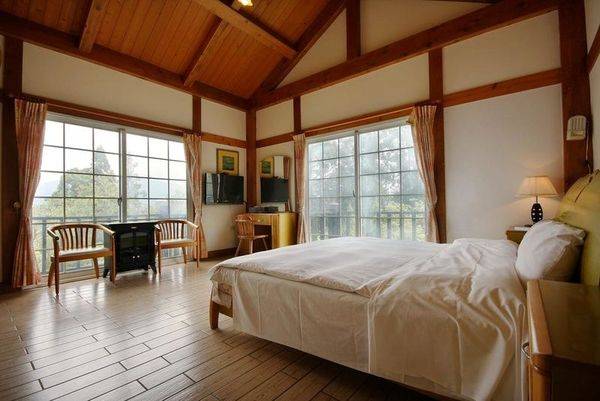 良好的採光,打開玻璃門就能欣賞山景,可說是這間度假山莊每間房間都有的優勢。