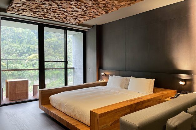 為了響應飯店自然健康的宗旨,北投老爺酒店的外觀使用「綠建材((EEWH)」築起,室內設計更是大量運用保留自然紋理的石材與原木,體現純淨的大自然為理念,是實實在在「會呼吸」的綠建築啊!