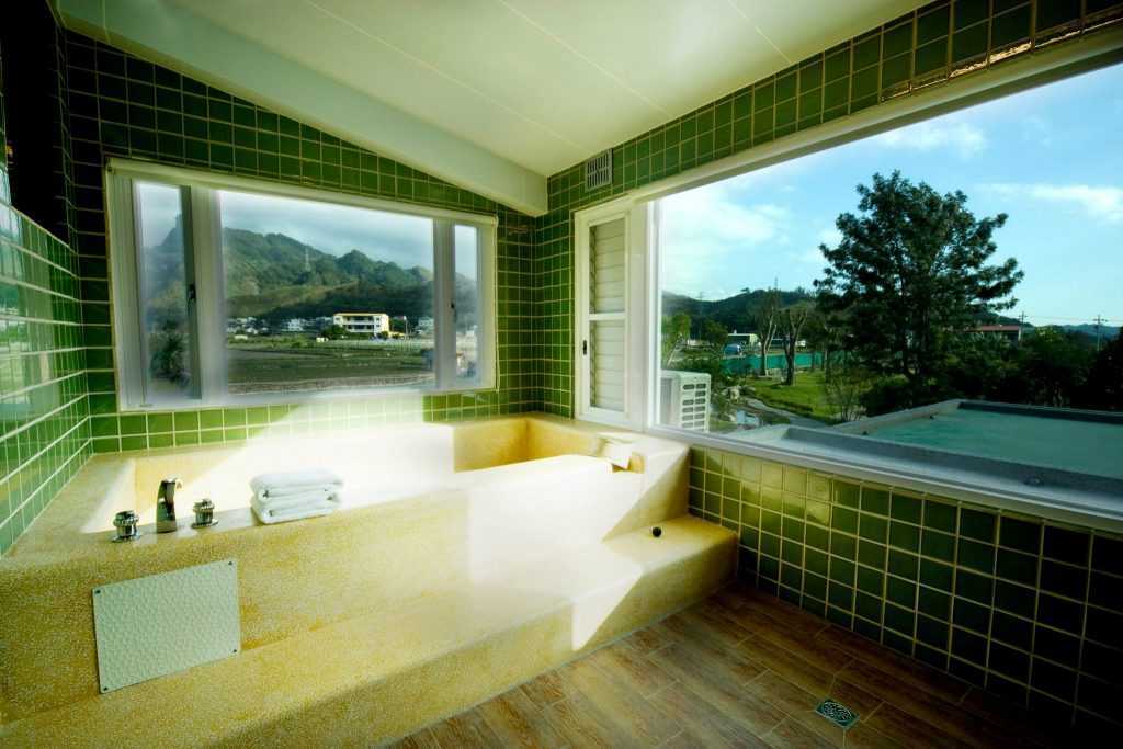 空間密碼田野廣景四人房適合一家四口旅遊居住。這間套房總共分為兩層樓,一樓主要是客廳和浴室,二樓則是主臥室。與空間密碼雙人套房的裝潢是一樣的風格。從落地窗望去能看到一望無際的田園和群山,喜歡自然的旅客可以考慮訂購這間套房。