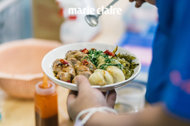 花蓮人的下午茶吃什麼?來福建街找找看吧,靠近中福街口就可看見長長的人龍,還能聞到木炭香氣,販賣的商品相當單純只有香腸、糯米腸、綜合三種選項,切塊後上桌前會撒上酸菜、香菜再淋上一點醬汁,香腸帶點酒香,糯米腸裡頭包著的是鹹香的花生,與酸菜做了完美的搭配,若是想再飽足點可點碗湯,有豬血湯、大腸湯、貢丸湯,來個一套就是最道地的花蓮下午茶。
