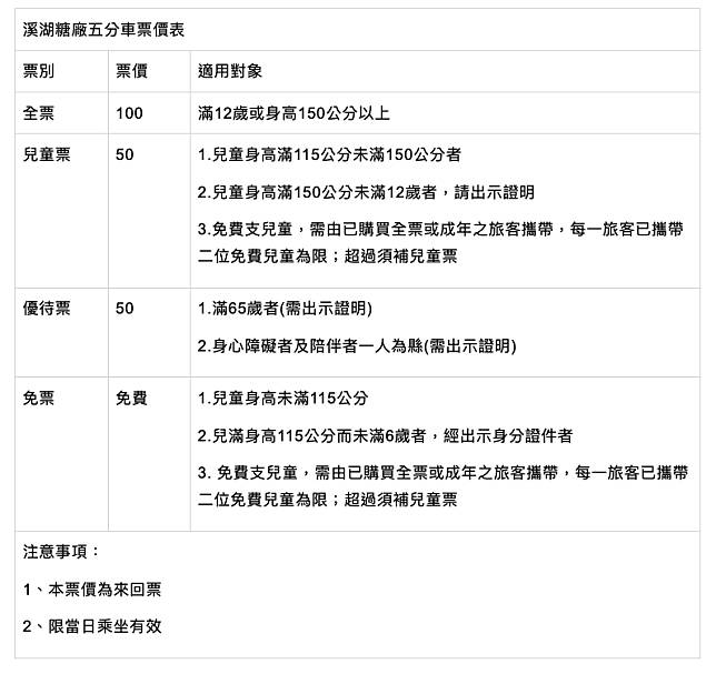 五分車票價