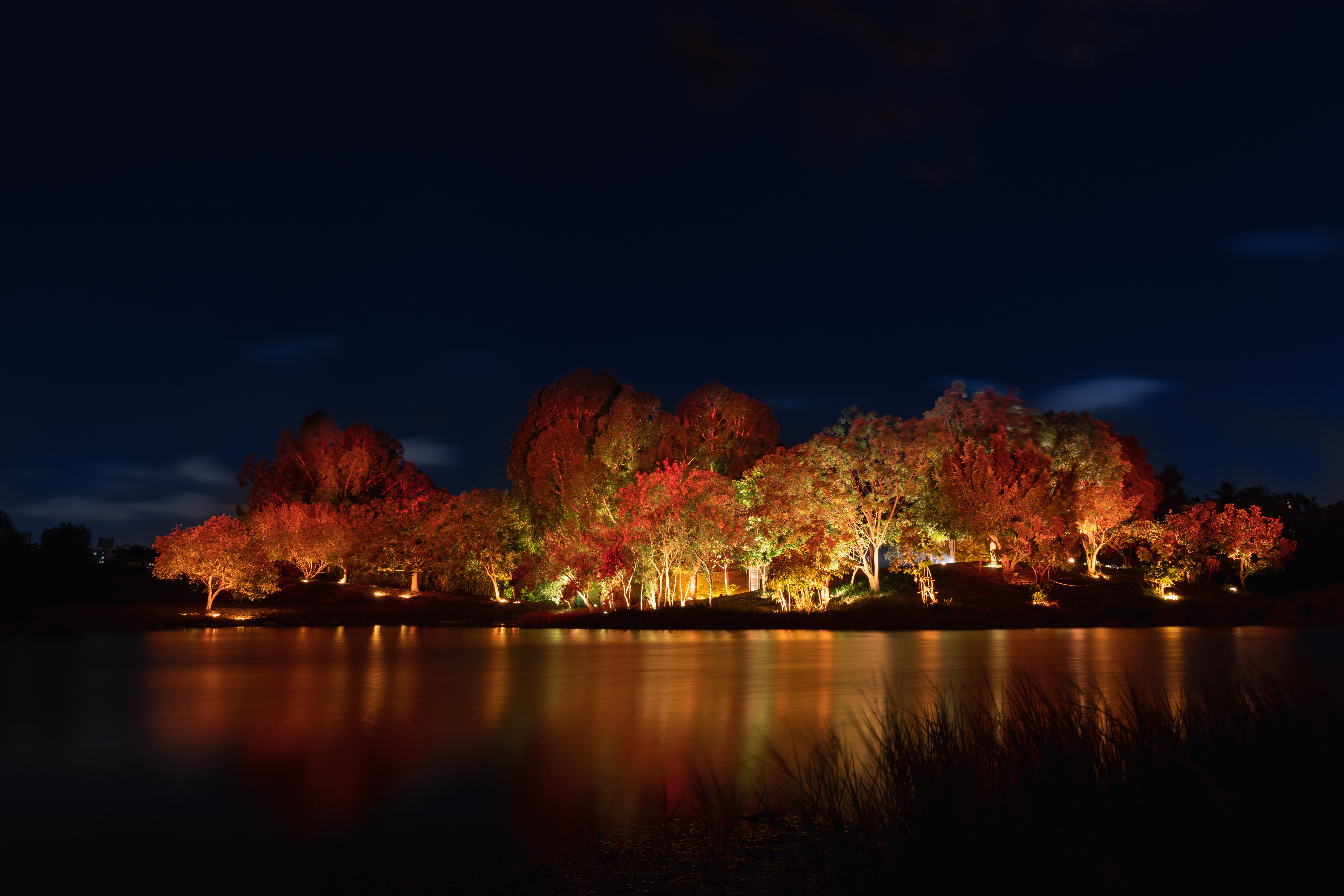 此作品位於衛武營公園中的北湖,利用森林鏡射湖面的倒影,搭配多層次的佈光,令人感受到斑駁色彩在波動的氛圍,彷彿置身於綺麗且四季變幻的樹影光廊之中。展現光與影的最佳演繹。