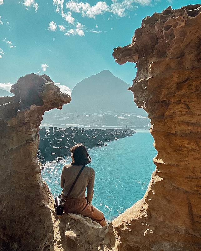 童話故事裡的大野狼跟小綿羊怎麼跑到水湳洞了呢?原來是天然海水+風侵蝕而成的岩石,在陽光照射下,背光角度拍出來的照片,真的很像一隻大野狼跟一隻小綿羊,透過中間的凹槽可以看見陰陽海的景色,不過因為有點高度,拍照的時候千萬要小心,不能因為要拍美照而受傷了。(小編偷偷告訴你們:這是目前還沒有太多人知道的隱藏版景點唷!)