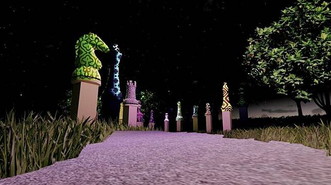 2021光織影舞以「做好防疫 迎向幸福」為主軸,並規劃兩大展區用「光與影」的溫度帶給民眾希望。北香湖公園(看地圖)展區的「步步為營-棋遇」,在北香湖高音譜記號廣場步道設置32座夜光西洋棋,更有著國王、皇后及城門的意象,提著著人們在疫情之下得「步步為營」方能回歸日常生活。