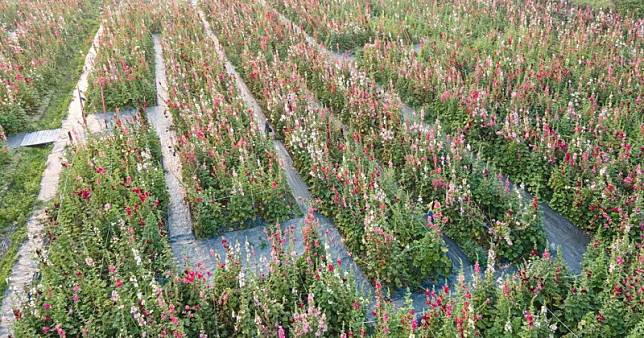 蜀葵花又名「一丈紅」,長得相當高大最高約可達3公尺,在高高聳立的花莖之上開出成串花朵,花朵的顏色十分繽紛,盛放時不但繽紛多彩,且步入花叢之間有種置身在迷宮之中的錯覺,因此被譽為全台最盛大、壯觀蜀葵花海迷宮。