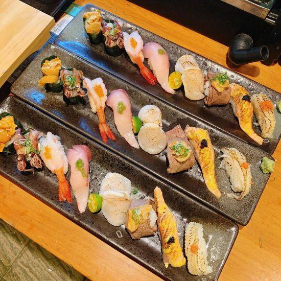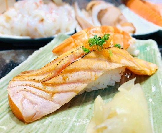 經典代表非毛毛蟲壽司莫屬,紮實的壽司餡料,頂端鋪一層鮭魚後再炙燒,撒上日式海苔粉,可以品嘗到鮭魚油脂在口內散發,配上口感剛剛好的醋飯,真的會讓人想一吃再吃、吃過就念念不忘的好滋味!