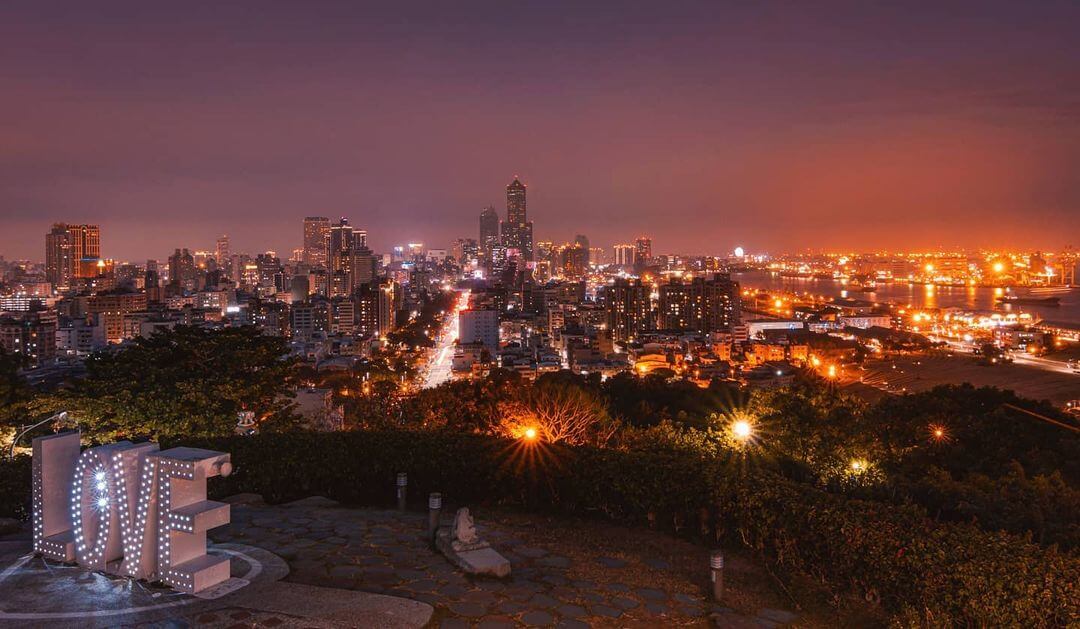 「壽山情人觀景台」位於壽山忠烈祠旁,LOVE傳聲筒的裝置藝術最為知名,每當夜幕低垂華燈初上,搭配美麗的燈光造景,浪滿指數直接破表!站在觀景台上俯瞰繁華城市高樓燈火,眺望遠處船舶港口的美景,你可以一一細數港都風貌。85大樓、西子灣、高雄港、旗津都盡收眼底,是觀賞港都高雄璀璨百萬夜景的絕佳景點。
