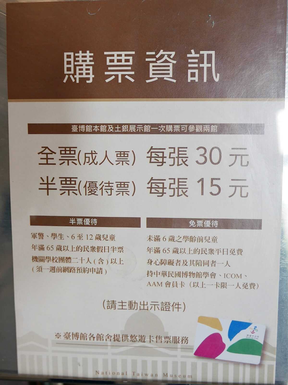 |票價|全票每張 30元|半票每張 15元|本館及古生物館一票共用