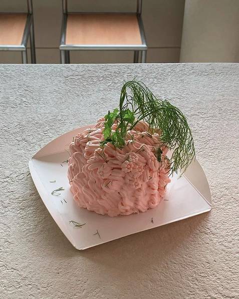 該店的香菜系列料理每一道都精緻,把香菜完美融合於甜點和飲品之中。而招牌甜點就是粉紅蒔蘿香菜奶油蛋糕!以淺粉色的奶油包覆著海綿蛋糕,並插上香菜和蒔蘿點綴,簡單多層次的口感。這時候再來一杯香菜檸檬氣泡飲,就能打造出整套的香菜下午茶!