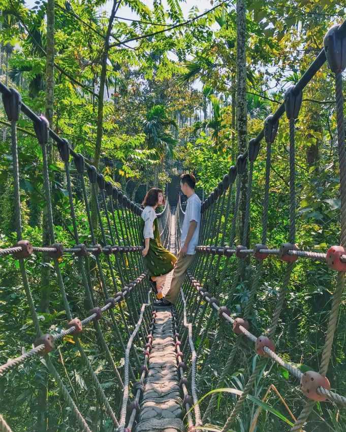 隱身在雲林山中的秘境景點,使用繩索編織製成的這座吊橋,因為限載兩人又被大家稱為情人橋,情侶兩人一起走在搖晃狹窄的橋上,有如森林裡冒險般的刺激感,走在橋上可以遠眺雄偉的大小尖山景,走到最高點,回頭眺望吊橋全景時,寬闊的視野帶給人放鬆的心情,在吊橋前端拍照彷彿像置身峇里島雨林之中。