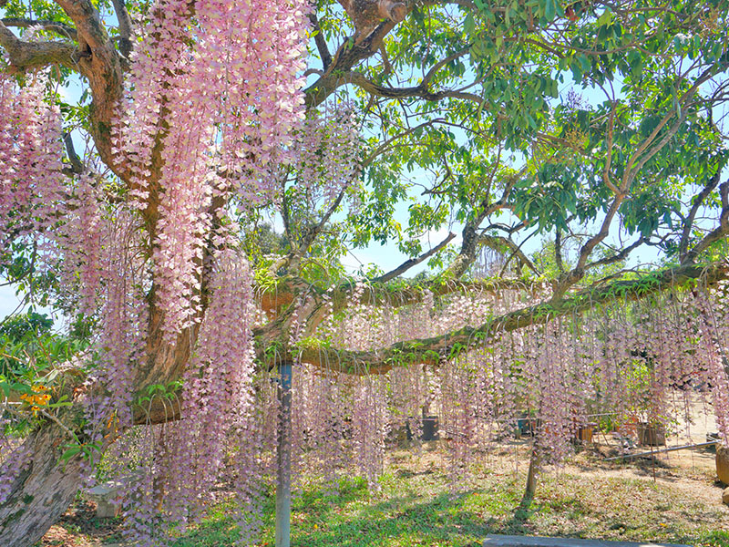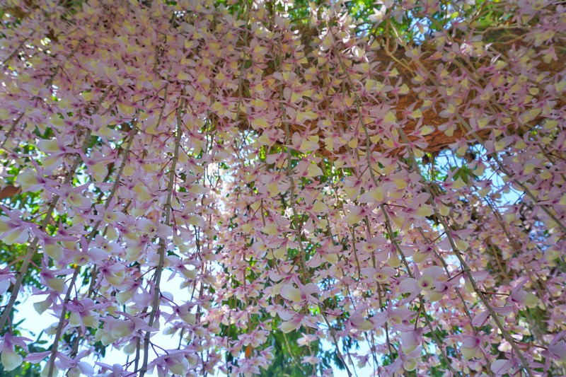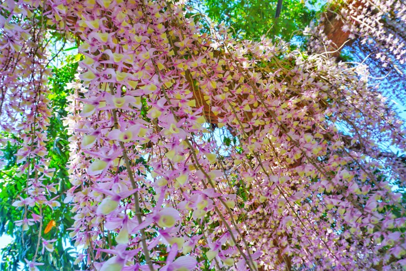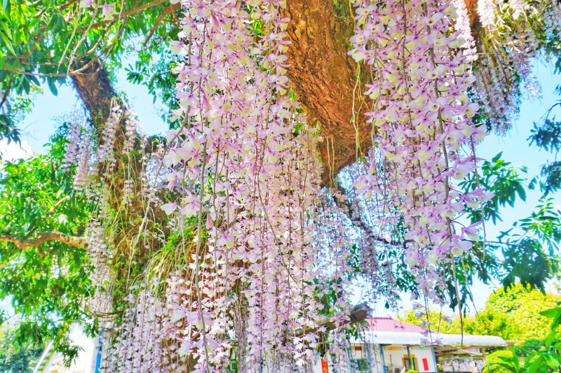 如瀑布般的花海是由當地居民吳先生一手種植,於家中老龍眼樹上種植天宮石斛蘭,也因多株栽種一起,每當四月花期同步盛開時,萬朵群花爭豔,形成壯觀花瀑景象,微風輕拂更讓花朵散發淡淡清香,令人心曠神怡,不僅吸引眾多遊客前來朝聖,也是攝影師的口袋秘境。