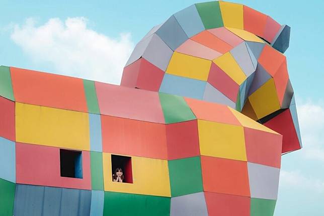 首先第一個必拍點就是可以說是代表者個農場的地標「彩虹馬」,以綠色草地為背景,這隻有如彩色版的特洛伊木馬顯的耀眼吸睛,還可以爬到上面去俯瞰整個農場,以及月世界特殊地形的難得景觀。