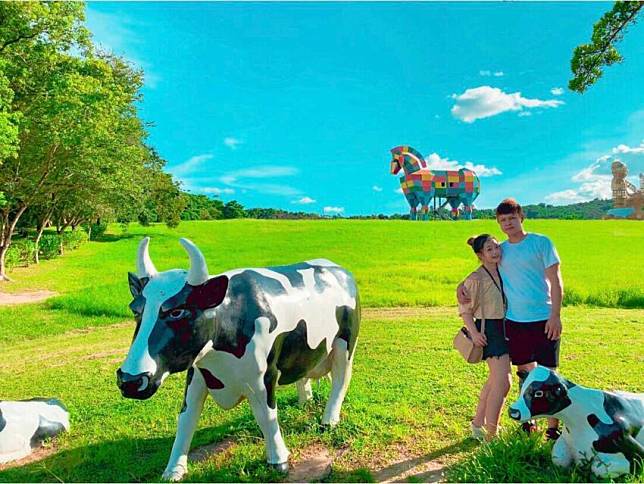 身為農場當然少不了可愛動物們,有別於一般農場的乳牛,這邊低頭吃草的是沒有斑點的肉牛,另外還有高達30項有趣的遊樂設施,最後還可以在這邊過夜,包含度假木屋、度假旅館,甚至還有國際三星認證的露營區,是來台南另一處家庭親子踏青好地方喔。