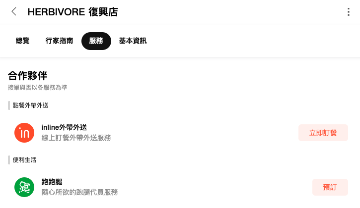 跑跑腿:北部地區立即點擊商家資訊卡下的服務按鈕!