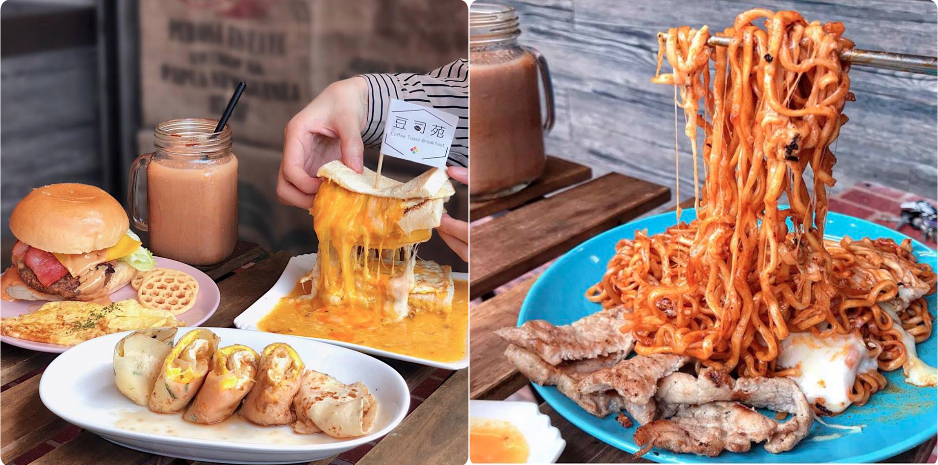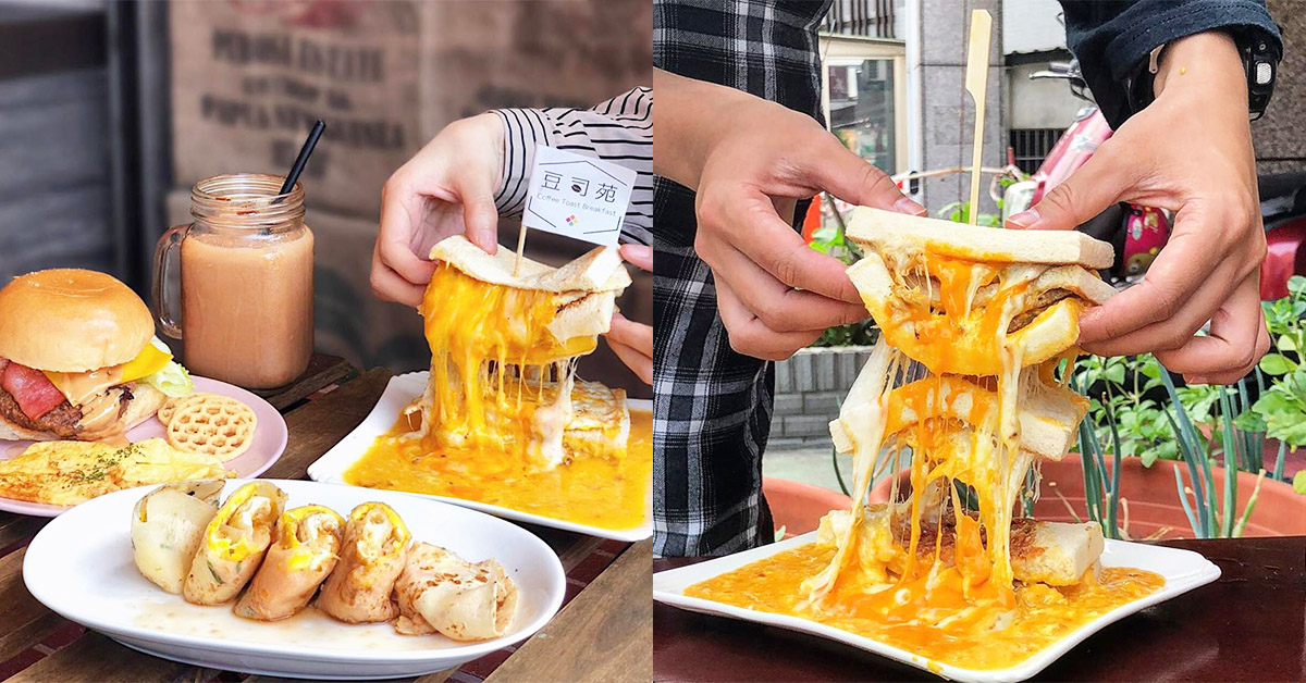 中永和的早午餐好選擇!位在中和南山路上的「豆司苑」,坐捷運到南勢角站,豆司苑的完全不受控起司瀑布肉蛋吐司!金黃色澤閃到讓人眼睛睜不開,漂浮一片的金黃瀑布海,用看的就覺得很療癒,阿這裡很必吃的還有其他早餐店不會有的火山炒泡麵,半熟蛋劃開,蛋汁緩緩流淌!啊嘶!但小心有點辣。