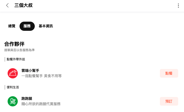 跑跑腿 北部地區立即點擊商家資訊卡下的服務按鈕!