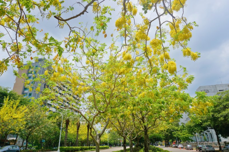 迎接盛夏前,來場黃金雨吧!位於台中興大路綠園道,自行車道周圍種了滿滿的阿勃勒,每到5、6月的時節總可見成串金黃瀑布落下成了黃色地毯,愜意的場景總讓人在此駐足、忘記時光的流轉。