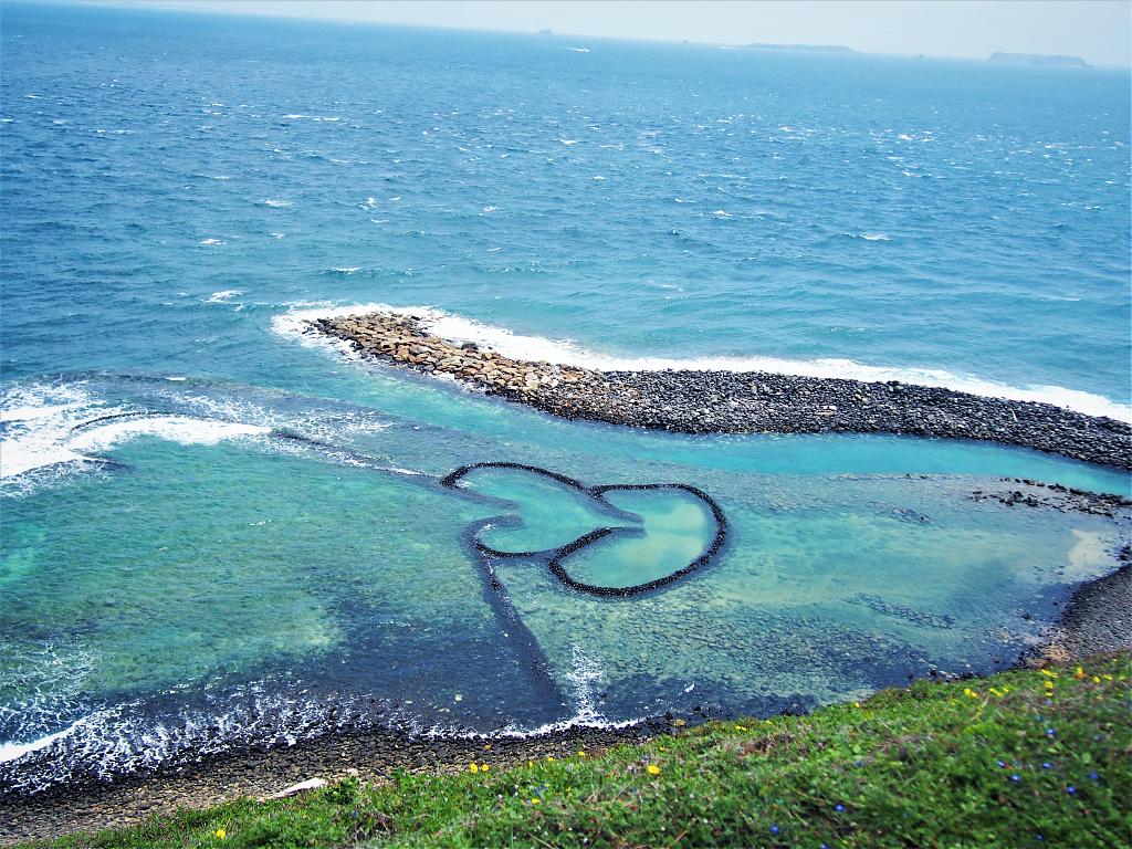 而七美島上的牛母坪又稱小台灣,因為龍埕地形而形成,一定要站在上方石階才可以看到小台灣的景色。七美島上唯一的沙灘就是月鯉灣!海岸以貝殼沙及珊瑚碎為主,澎湖跳島來七美,除了欣賞雙心石滬等自然地形景觀,也別忘了到月鯉灣浮潛喔。