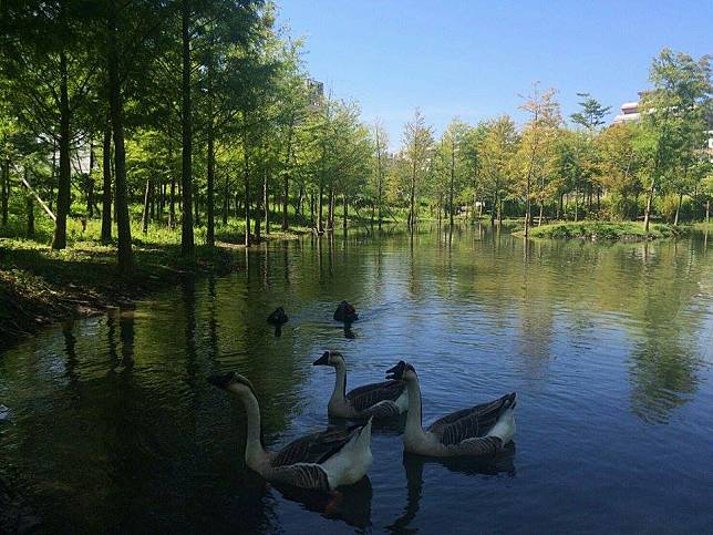 名字會取「臉都綠了」,可是有原因的,因為民宿外種植了一大片落羽松樹林,天氣好的時候,整片綠蔭伴隨陽光照下來映在臉上,整個臉都因此染成綠色。一到民宿,就能看到繽紛亮麗、有如童話風格的建築物坐落在樹林與池塘邊,感覺超像身處在歐洲小鎮!