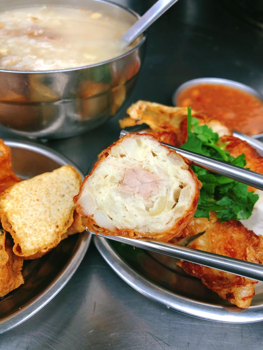 魚漿的鮮、荸薺的脆、洋蔥的甜、油炸豆皮的酥。