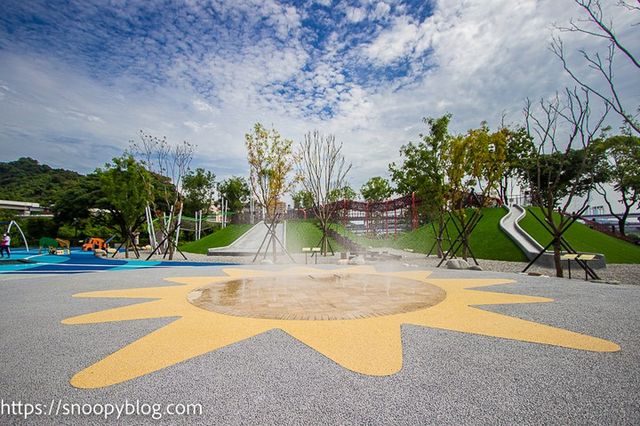 新北陽光運動公園兒童遊戲場一直深受在地居民喜愛,2021擴大整修後,更成為當地第一座擁有陸海空特色的大型遊樂場地。六大主題區結合「陽光綠洲」意象,各式遊具、空中繩索橋、大型沙坑等親子設施全都包辦,其中最熱門的「蝶形水道」,9大設備從早9到晚7,每30分就會噴水15分鐘,搭配遊戲區水霧廣場定時噴出的冰涼水霧,大人小孩都能開心玩樂、暑氣全消!