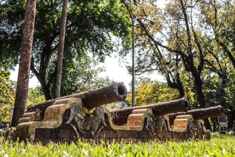 嘉義公園內也有知名的比利時尿尿小童、清代古炮遺跡、射日塔也都可一道順遊,公園對面也有「KANO園區」可和巨大版的棒球、球棒、球套拍照,為此趟旅行增添紀念意義。