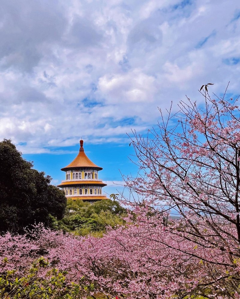 淡水的天元宮種植了許多吉野櫻以及三色櫻,每年一月下旬至三、四月陸續盛開,壯觀的花海與天壇同框相當壯觀,想要欣賞絕美櫻花的人不要錯過了。
