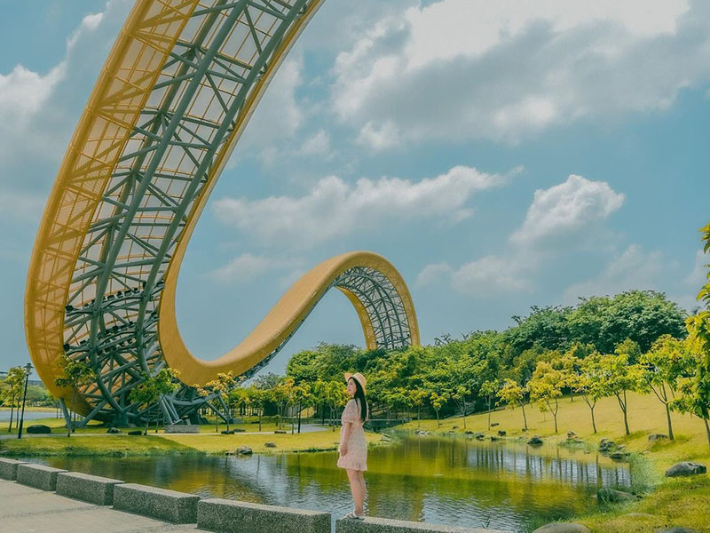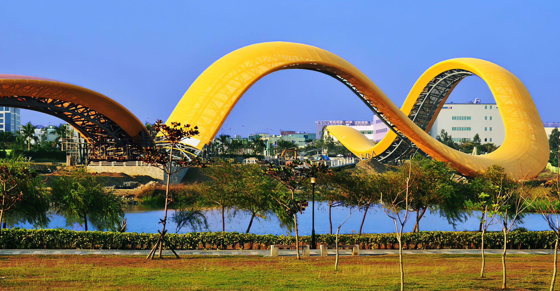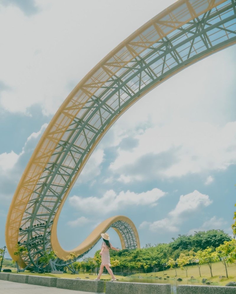 凡搭乘高鐵往返南北的朋友,經過台南地區或許都曾被這巨大的豔黃裝置藝術所吸引,不過左思右想又不知道這到底是什麼。從遠處眺看像是一條隨風飄揚的絲帶,近看卻像一座緊張刺激的雲霄飛車軌道,所以這到底是什麼呢?就讓我們繼續看下去吧!