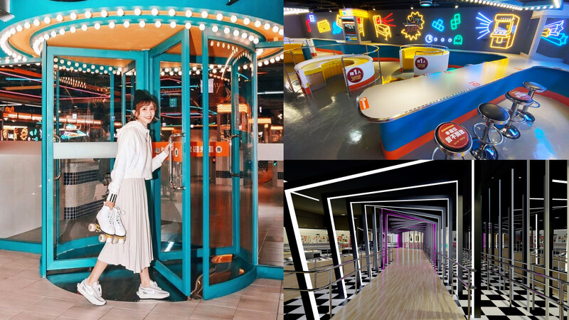 「Roller186滑輪場新時代館」就位於台中火車站旁,讓各地遊客都能方便前往。內部裝潢採復古懷舊風格結合潮流霓虹元素、引進AR互動科技及KTV練歌室,年輕人勢必玩到失心瘋!牆上有著復古電子遊戲造型燈飾,配上一格一格跳色方格磁磚,呈現出早期電玩的像素風格,更別說入口的美式嘉年華風霓虹旋轉門,每一處都能狂拍一波網美趙。