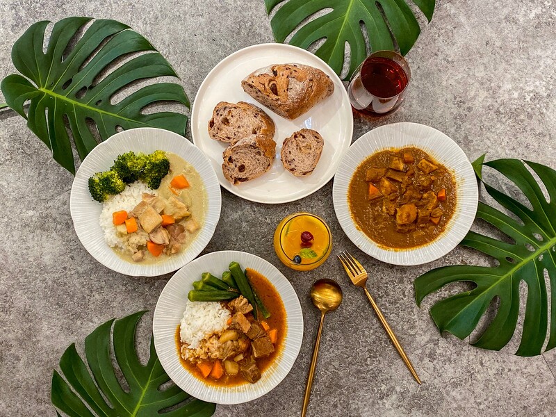 「紅酒燉牛肉」使用紅酒與數種新鮮香料和牛肉一同醃漬12小時再以小火慢燉數小時直到肉質呈現軟嫩入口即化的口感,真材實料呈現法國傳統家鄉味;「泰式綠咖哩雞肉」喜愛重口味的人絕對不能錯過!加入檸檬香茅與南薑、青辣椒、檸檬葉等數種香料與食材小火慢成而成的綠咖哩再配上椰奶的濃郁滑順口感以及獨特香氣!