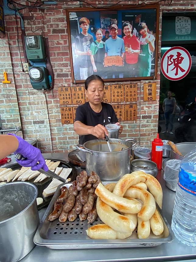 另一家陳家煎盤粿為了方便客人點餐,有A、B、C、D餐,特A、B、C、D餐等組合,特A餐包含4塊粿、米腸、滷腸、香腸,也有免費柴魚湯可自行取用。