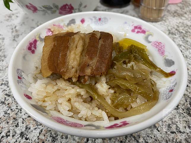 阿敏蟳羹的小排飯、焢肉飯、蝦仁飯等,一碗不過30、40元,全都是銅板價,小排或焢肉都滷得嫩而不柴,甚至還可以點雙拼,焢肉小排、滷肉小排、蝦仁小排,一碗兩種肉,吃來更過癮。焢肉是帶皮五花肉,肥而不膩,稍吸吮就化開了;小排脂肪不多,肉質卻頗嫩,滷汁鹹香不黏滯,搭配軟硬適中的米飯,吃來好滿足。