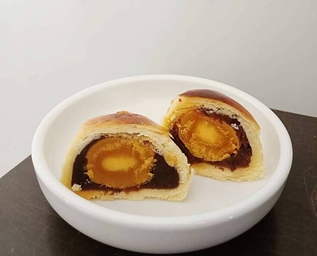 蛋黃酥口味有包入豆沙肉脯的「貴妃蛋黃酥」、傳統「烏豆沙蛋黃酥」、以及南瓜餡及外型的「南瓜馬車蛋黃酥」 ,每一顆外觀皆飽滿圓潤賣相極佳,薄脆外皮包覆不過甜的鬆軟內餡,蛋黃大顆且沒腥味散發自然蛋香,價格更只要一個銅板,得獎無數也算是實至名歸。