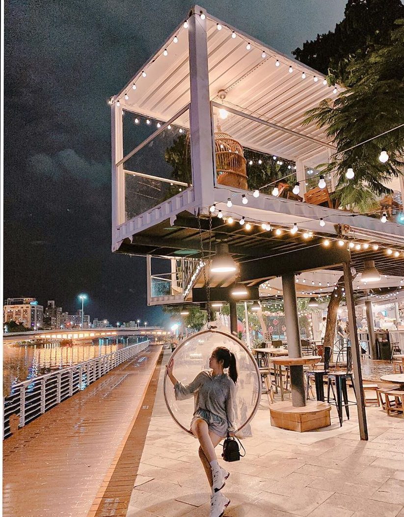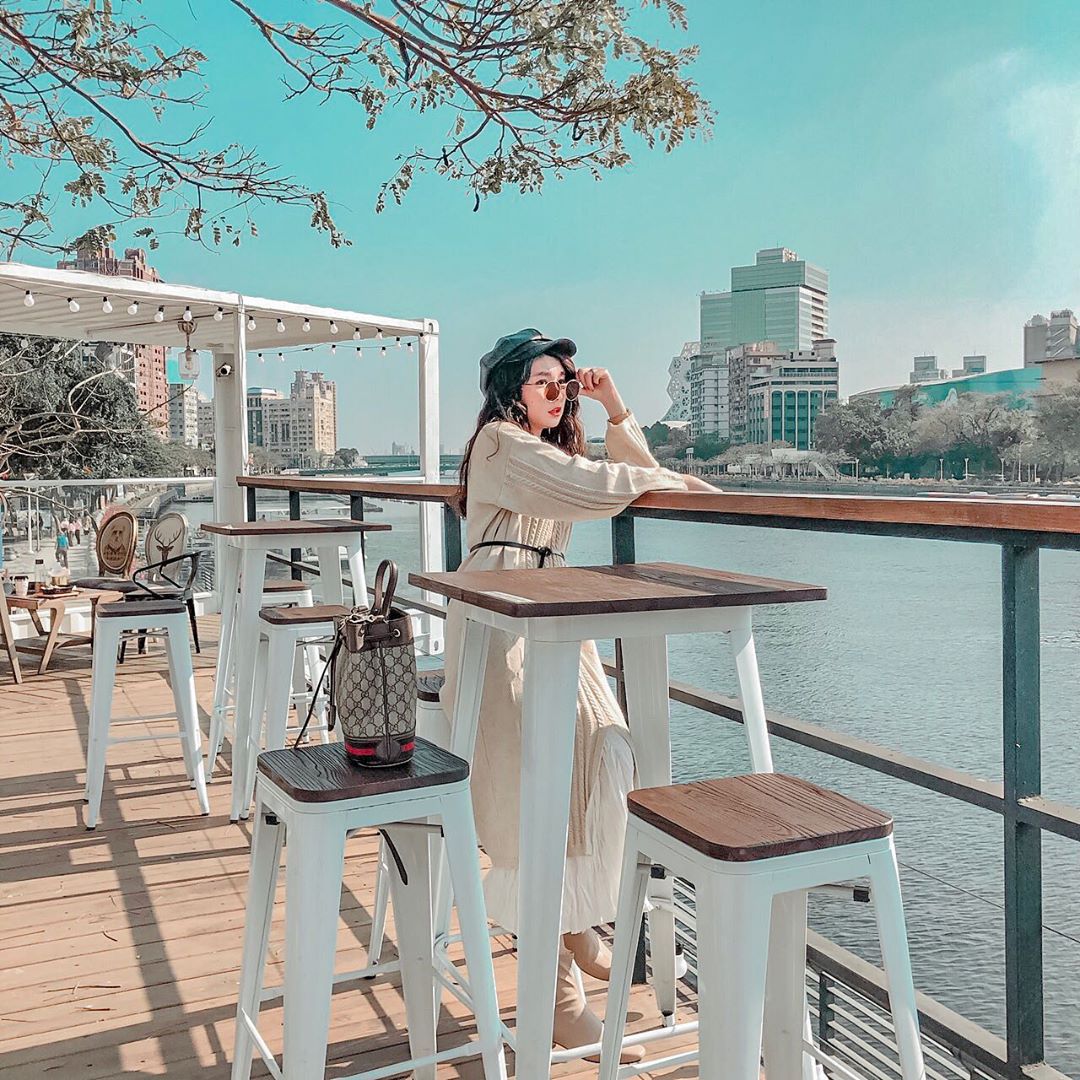 二樓由兩座貨櫃搭上空中走道組合而成,貨櫃內的用餐區在天氣熱時是有冷氣的,若是白天來到這裡,害怕南部熱情的太陽,便可以選擇在二樓用餐。但若是在天氣較涼爽時來訪,小編會選擇坐在二樓室外,吹著愛河輕柔的涼風,由高處向下俯瞰愛河週邊景色,配上一杯甜蜜的飲料,更是充滿著幸福滋味的時刻啊。