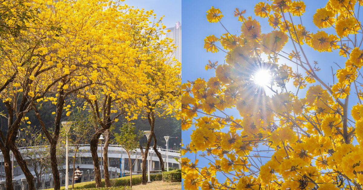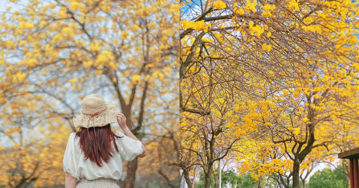 身為巴西國花的黃金風鈴木,以前多作為觀賞用植物,來到台灣之後漸漸演變成中南部獨有的人行道樹,而每年的2月底到3月初,黃花風鈴木便會悄悄地盛開,一大片金黃色的花海真的是美到翻掉。而台灣最適合觀賞黃花風鈴木的景點便是位於高雄鳳山的衛武營公園,寬敞的園地空間搭配高雄不用錢的陽光和藍天,以及金黃色的黃花風鈴木,那充滿著春天氣息的氛圍真是讓人流連忘返。不過由於黃花風鈴木的花期較短,從盛開到凋謝約維持2週左右的時間,建議大家想拍到絕美的金黃美景千萬要早點去!