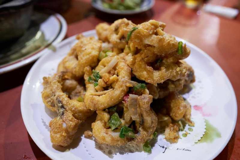 「阿奇海鮮」主打台式熱炒海鮮料理,每道菜的價位約在 100~200 元,而老饕激推的菜色有金沙軟絲、烤魚下巴、味噌魚、熱炒螺肉和九層塔蛤蜊,口味偏重非常下飯,另外店家每日限量的鮭魚頭,拿來煮湯或炭烤都很對味,也是很多人必點的菜。而餐廳屬於半開放式的用餐空間,晚餐時段經常都是滿滿的人潮,建議想吃的讀者要先訂位才有位置喔!