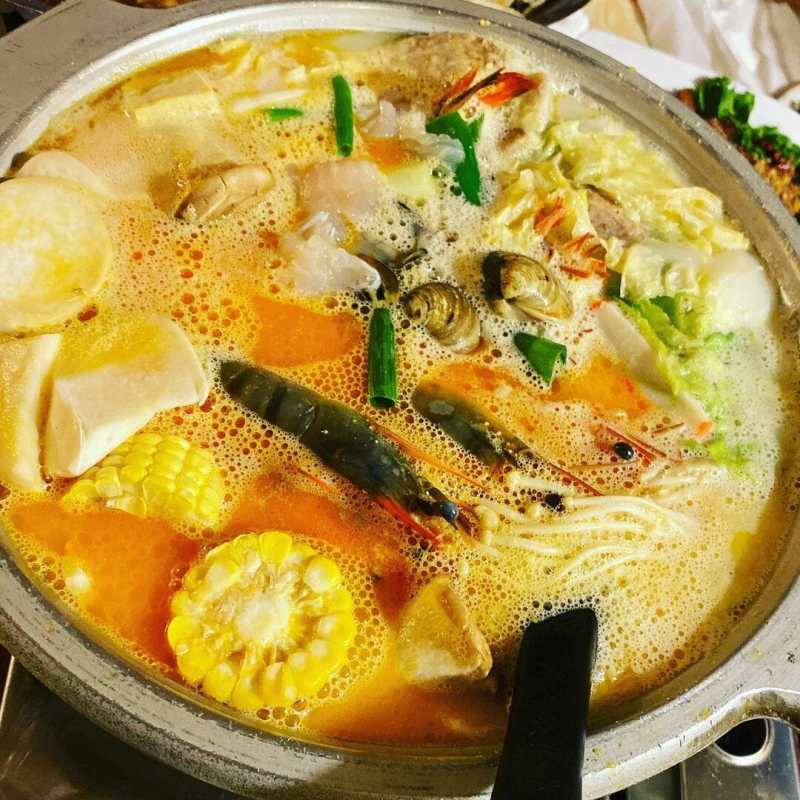 在台中有多家分店的「獅兄弟風味小酒館」,必點的招牌菜除了生滾蟹黃粥、原味菲力牛、香辣螃蟹麵線、黃金軟絲,還有榜上有名的黃金海鮮鍋,湯底是帶有鹹蛋黃的獨家牛奶湯頭,加上大白菜、芋頭、玉米以及蝦子、鮮蚵、海參等豐富的海鮮,吃起來是清甜又爽口!據說店家還有菜單上沒有的私房菜色,有機會踩點的話,不妨問店員看看囉。