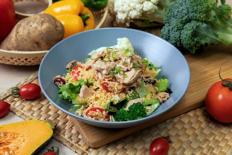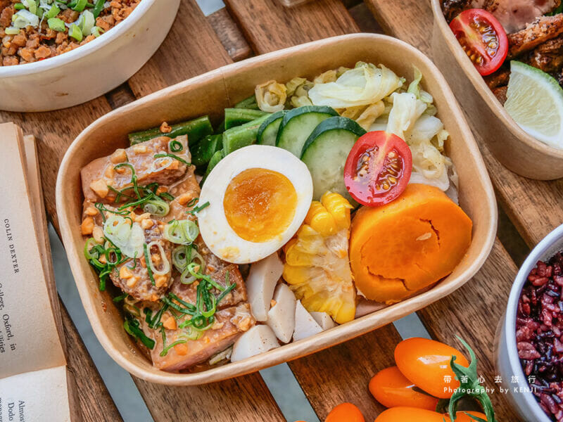 咕蔬搖的健康餐盒裡面會以選用5-6樣小農時蔬,搭配溏心蛋、紫米飯、國產雞肉、國產黑豬肉去做菜色變化。跟市場上健康餐的差別在於使用手作醬料下去做調味,例如:鹽蔥醬、金沙醬…等等。一個飯盒的靈魂在於肉品的好吃程度,咕蔬搖運用不同的自製醬料搭配不同的肉品,打造最適合肉品的絕佳風味。除此之外,餐盒的熱量低、健康、口味又多變,適合在健身、減肥或想吃的健康的你。每天都吃也可以每天都可以吃不膩!