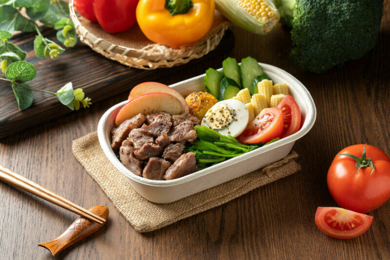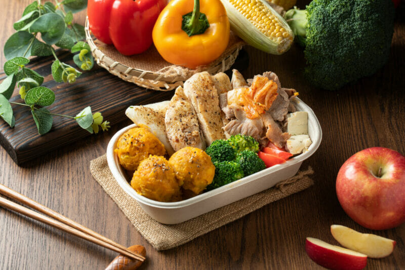 「高蛋白系列餐盒」則針對塑身飲食做設計,沒有米飯的大量碳水,特別在於含有三顆金黃地瓜泥球補充基本碳水的攝取。再搭配上柔嫩多汁的舒肥肉品增加滿滿的蛋白質,無論想瘦身或增肌都適合。