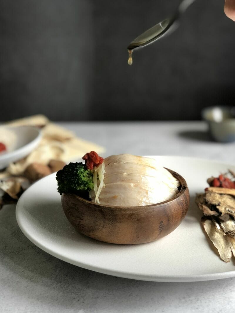 網友最推薦的口味是「酒香麻油嫩雞胸」,吃起來跟印象中的麻油雞完全不一樣,打開來有一種酒香微醺感,吃起來則是藥膳香、還有濃郁的麻油味,但是一點都不覺得油膩。肉汁淋飯、拌菜都超方便。這種特殊的調理方式,只有吃過才知道味道!