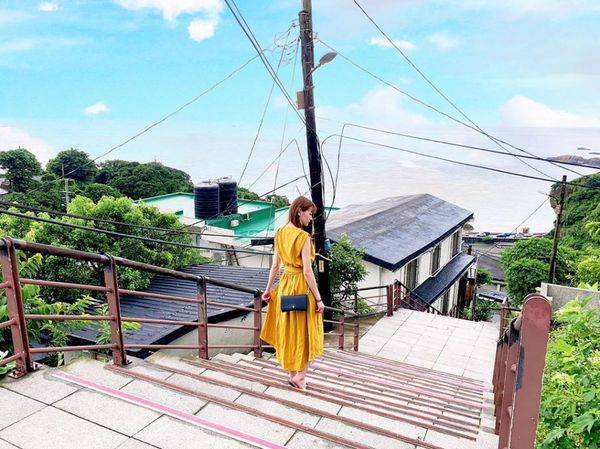 校外還有如同同日劇場景般的海景階梯。結束濂洞國小的行程後可以去車程10分鐘就到的報時山看浪漫的日落時分。