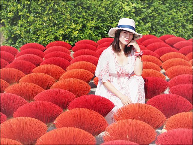 而這香竹球也都是老闆免費提供自家工廠場地,並且特意擺放讓大家拍照,週六固定有開放拍照,開放時間大多都在早上時段。因每次排列都需費時一小時,所以擺放的範圍不大,而曬香也需挑選晴天時才能進行,店家也會視原本的工作量,趁著空閒時才能布置,建議想要欣賞的這個另類紅色波波草的人,可以事先關注店家的粉絲團公布的時段,欣賞完這片療癒偽紅色花海後,順便向店家購買真正的香前往奉天宮(看地圖)參拜。