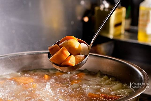 不使用速成的湯粉,每天都從馬鈴薯、紅蘿蔔、洋蔥等原物料開始熬上四、五十分鐘。