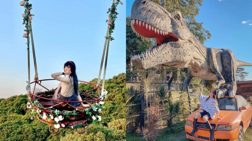 全台唯一、恐龍迷必訪的百果山探索樂園,是一座適合闔家同樂的親子樂園。走進百果山探索樂園,彷彿走進侏羅紀公園一樣,四處都有大型的擬真恐龍,揮舞著身軀,有些恐龍還會發出嘶吼的聲音,栩栩如生。而除了大恐龍雕像之外,園區內還有氣墊跳跳床、沙坑、攀爬網、溜滑梯、遊園車等遊樂設施,讓小朋友都玩瘋了!