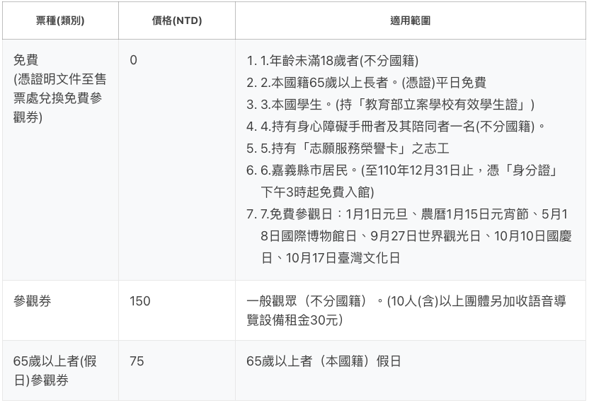 參觀票價