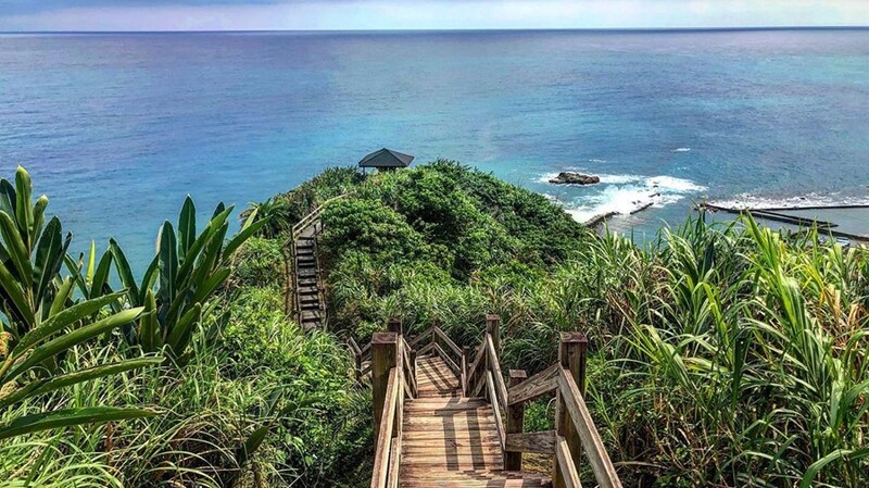 與北台灣的鼻頭角步道神似,「大石鼻山步道」同樣以藍天大海為背景,總長約910公尺、階梯起伏不大,途中也有涼亭可奢做休息,短短15分鐘就能抵達山頂。放眼望去就是一望無際的大海,即便是體力不好的人也能輕鬆完成。
