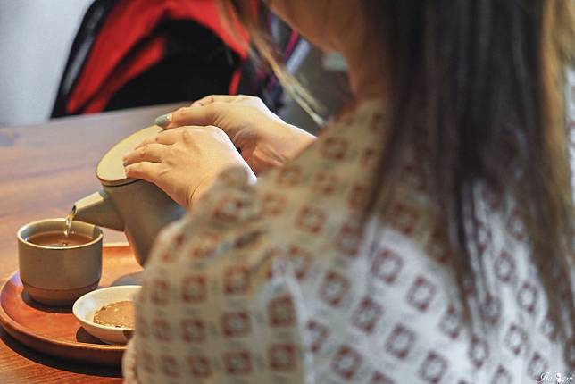 原本想點的是藝妓手沖咖啡,不過到訪當天這隻豆子賣完了!闆娘推薦了她們家的招牌-蘋果瑪黛茶,裡頭還有添加山竹、蘋果、阿根廷國寶瑪黛茶等,整體有熱帶水果的芳香,富含底蘊的花果香,趁熱喝時,甘甜好喝,放冷喝到底部會偏酸,可以回沖,附贈一片小點心。
